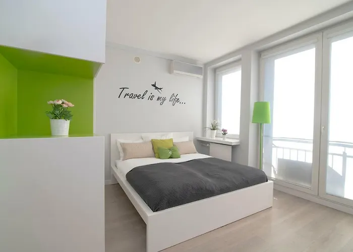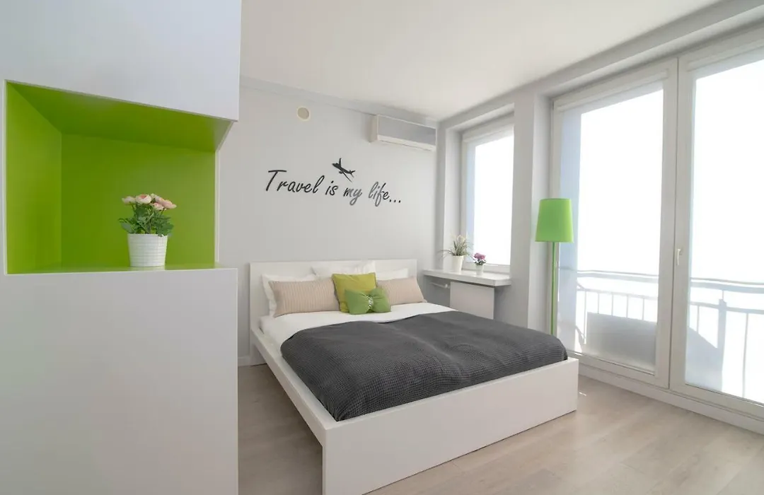 Among the self-catering amenities provided is a fully-fitted kitchen with a fridge, a stovetop, and kitchenware. Warsaw Frederic Chopin airport is 5 km from the apartment, while Centrum underground station is merely a 10-minute walk away. A patio is facing the city.